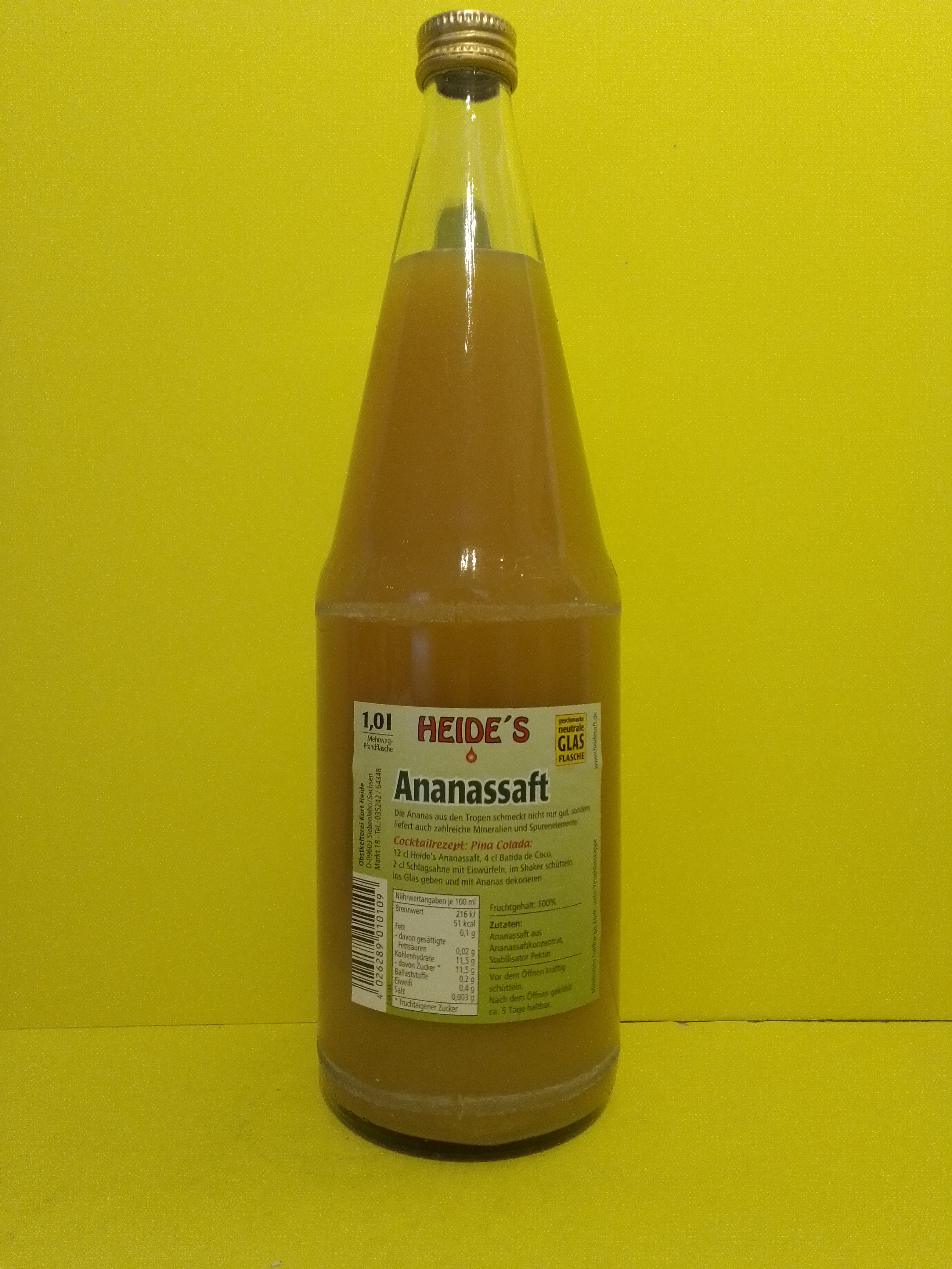 Produktinformationen "Heide`s Ananssaft 6x1l"